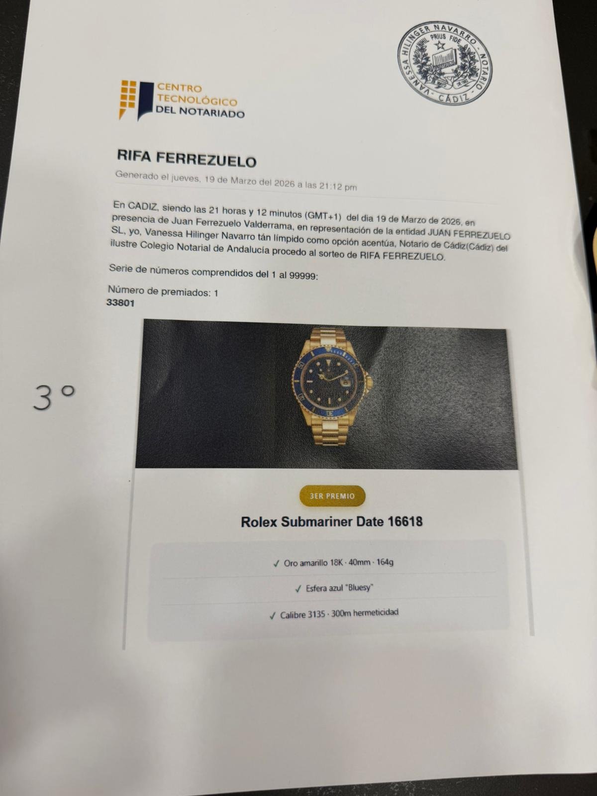 El sorteo ha sido realizado ante notario. Estos son los números ganadores: