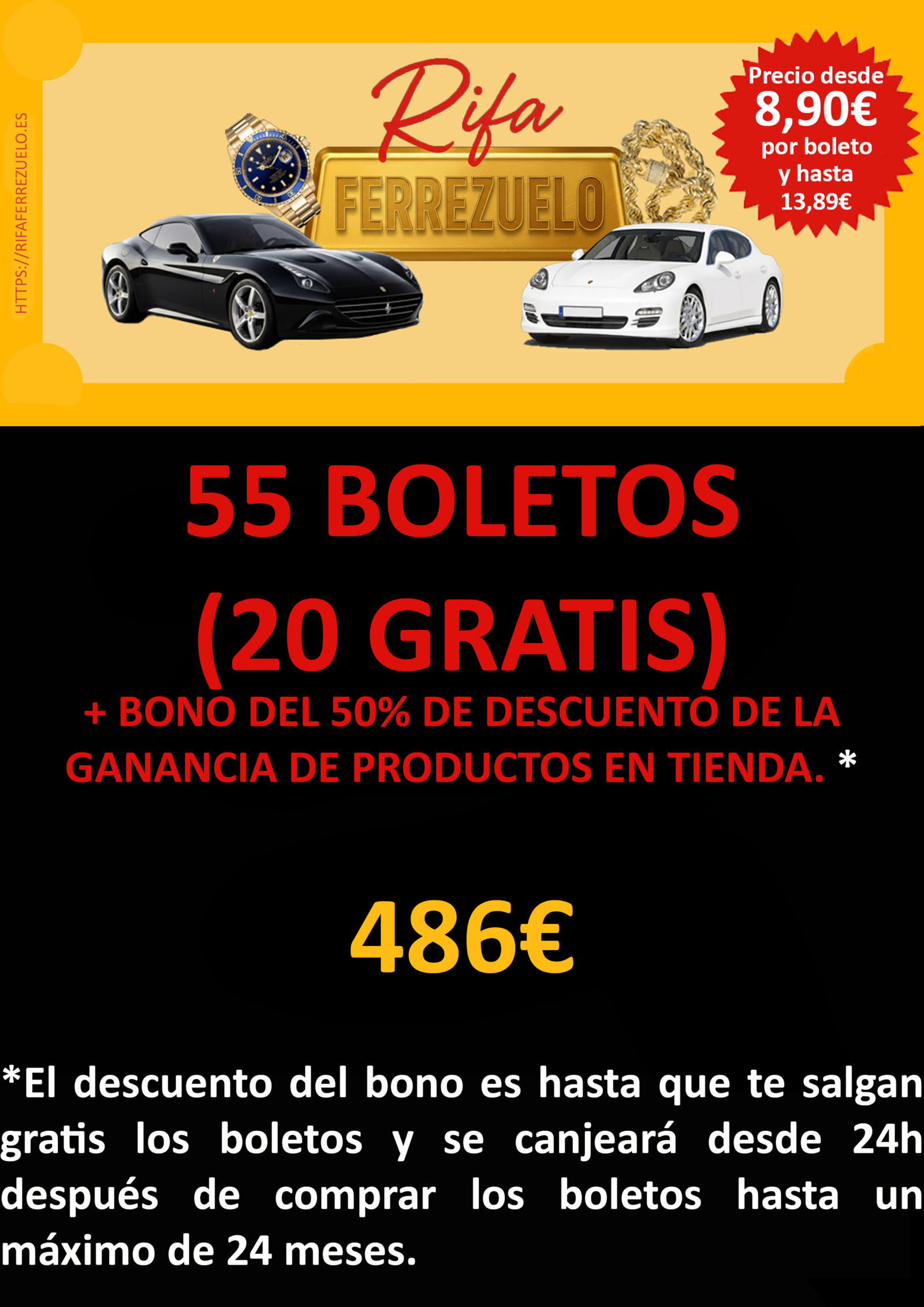Participa en la Rifa Ferrezuelo con 1 boleto. Precio: 13,89€ cada boleto